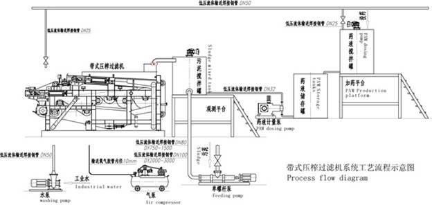 3、浓缩段和压滤段均采用无级调速,以求得最佳工艺匹配。